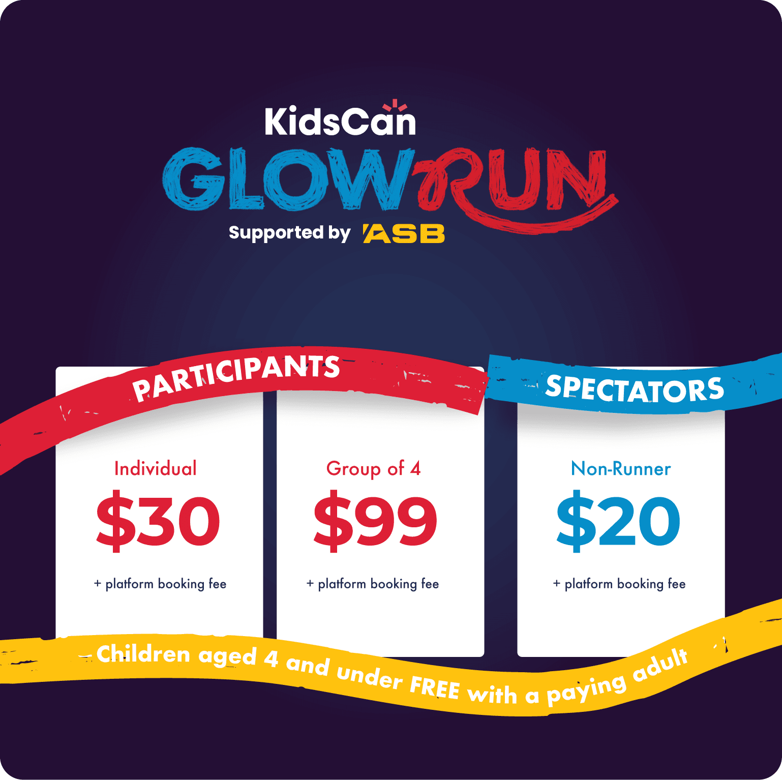 KidsCan GlowRun is an accessible event for all ages and abilities. Whether you move fast or take it slow — it’s all about bright energy and positive vibes. Bring your family, gather your friends and shine your light for Kiwi kids in need.