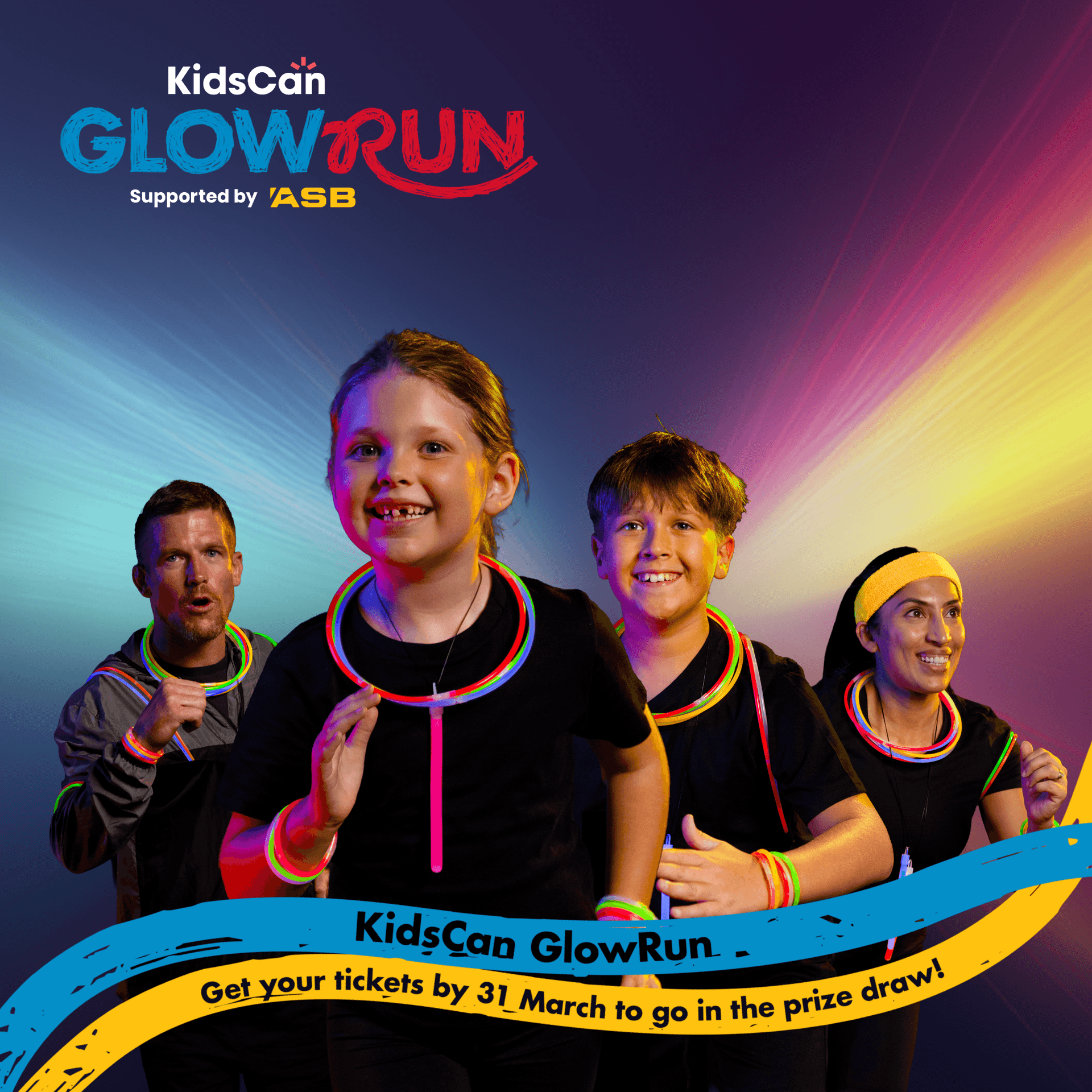KidsCan GlowRun, supported by ASB, will raise funds to help Kiwi kids in need as the colder months approach.